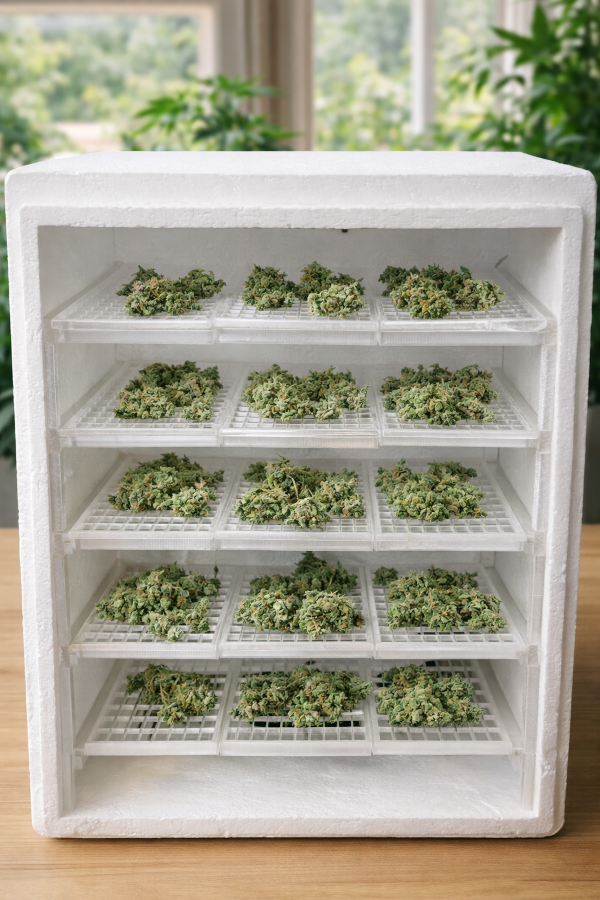 Eine gleichmäßige Verdunstung ist beim Trocknen von Cannabis besonders wichtig, da die wertvollen Inhaltsstoffe (Cannabinoide und Terpene) in den Trichomen sitzen. Terpene sind flüchtige, aromatische Moleküle, die nicht nur den Geruch bestimmen, sondern auch pharmakologisch wirksam sind (z. B. entzündungshemmend oder beruhigend). Sie reagieren extrem empfindlich auf Hitze, Sauerstoff und mechanische Verformung.
