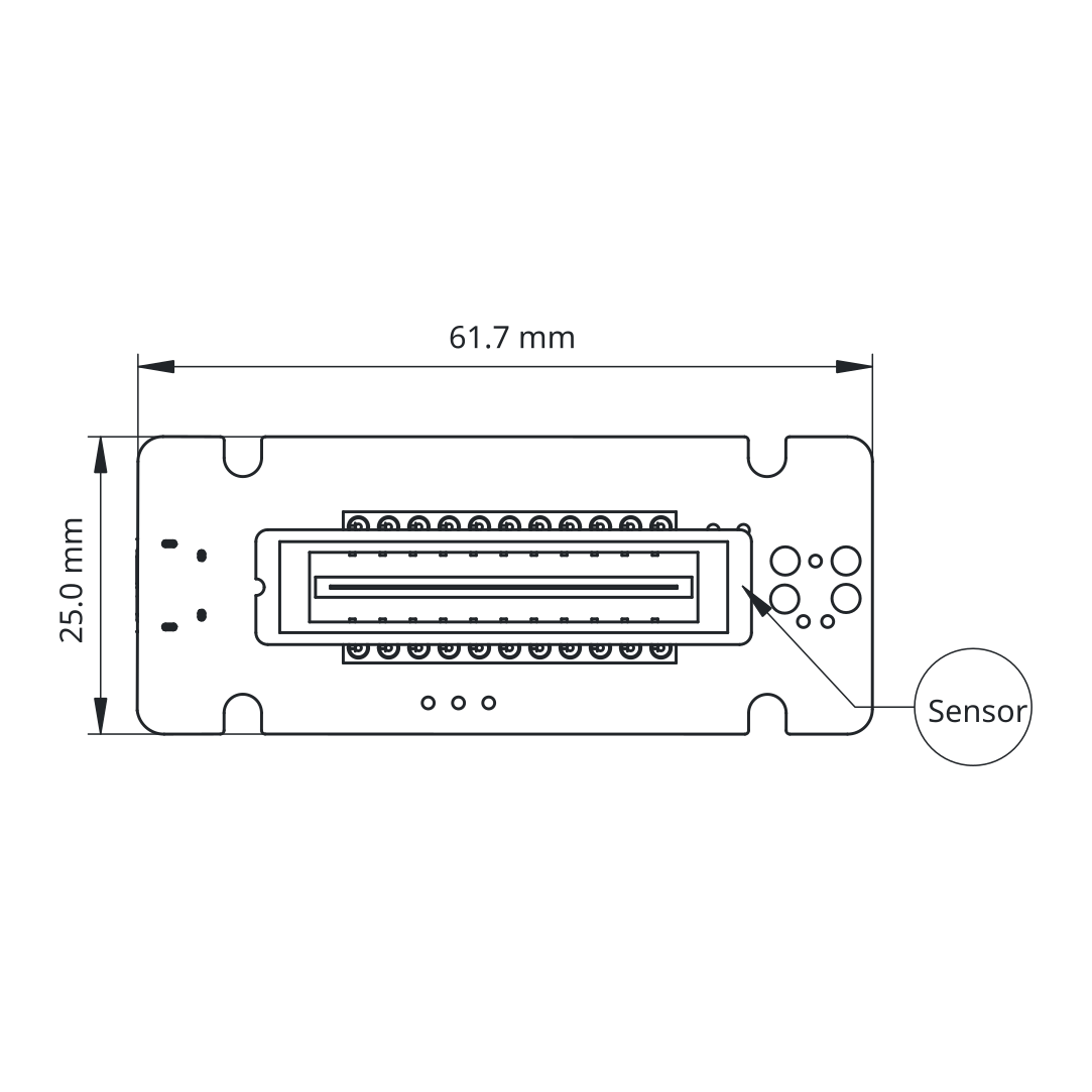 This module uses the TCD1304DG sensor without the standard cover glass and with an additional Lumogen coating to extend the usable spectral range into the UV. This makes the module ideal for use in spectrometers for e. g. the material analysis.