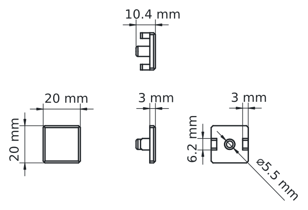 | Beschreibung: | Zum Aufstecken auf Enden von Profilen der Maße 20 × 20 mm. |